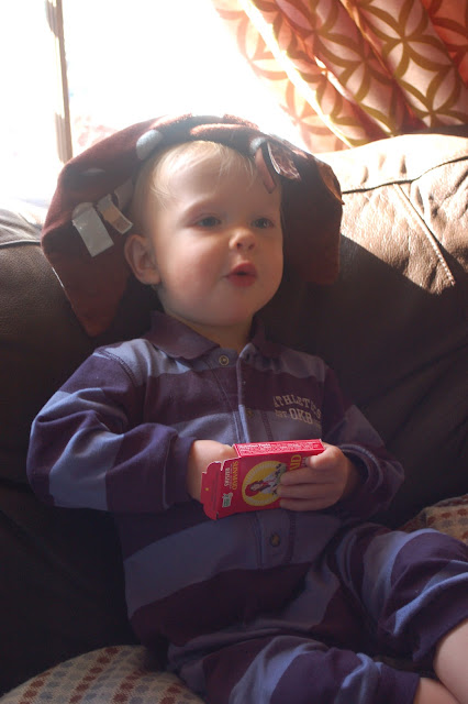 Aidan loves watching football. He actually knows when a touchdown is scored or a field goal is successful. This last weekend we watched the Vikings and the Lions game (not verse each other). Both were tense and Aidan was all over it. Notice his Vikings socks and his tribute to the Lions with his outfit. ***Papa we need some new Lions gear!